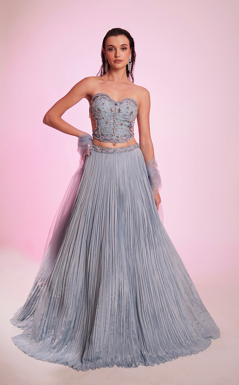 Harleen Sethi X Anshika Tak Label ( Lavender Dreamscape - ensemble that embodies glamour & finesse)
