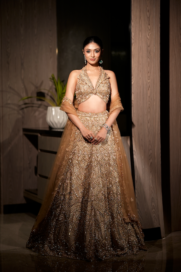 Champagne gold embellished lengha set
